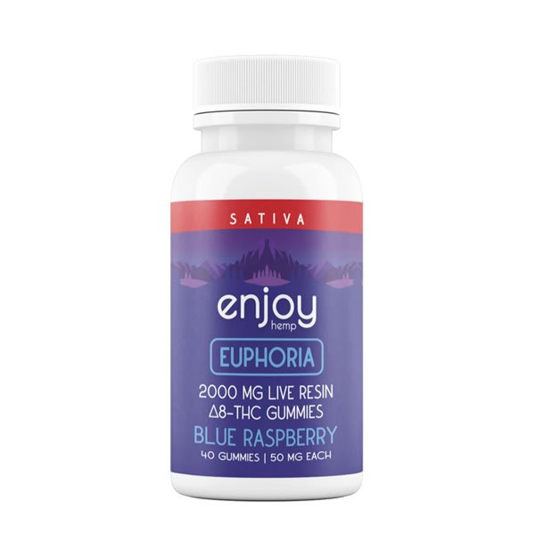 Reach new levels of euphoria with these premium blue raspberry flavored Delta-8 gummies with live resin terpenes from Enjoy Hemp. Each gummy contains 50mg of Delta-8 THC, along with an expertly crafted sativa terpene blend that provides effects that are on point.